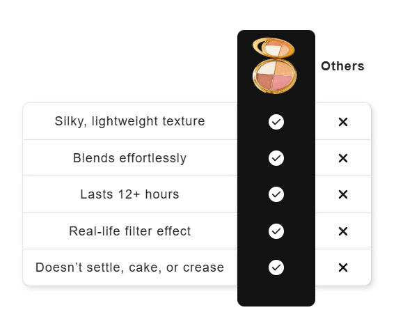 You can use each shade alone to contour or highlight specific areas of your face. You can also blend all the shades together for quick, overall warmth and glow. The colors are easy to build, allowing you to choose a subtle day look or full glam makeup.