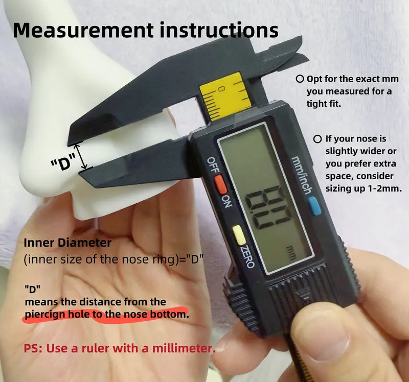 BEFORE YOU PURCHASE:If you encounter any issues - such as dissatisfaction, improper fit, or damage..., please contact our customer service right away. We’re committed to resolving your concerns promptly and ensuring your complete satisfaction.-----------------------------------------------This barbell has a thin 0.8mm (20G) gauge, so setting small gems (like 3mm) requires extra care.Pro Tip: Use the included ball holder piercing tool for easier assembly - especially if you have long nails.Avoid mishaps! Change jewelry over a clean, flat surface (not near a sink) to prevent losing tiny pieces.-----------------------------------------------Please NoteHow to choose the size of horseshoe nose ring?Our horseshoe nose ring only comes in two specifications: 20G (0.8mm) 8mm diameter and 18G (1.0mm) 8mm diameter. When choosing this product, you need to consider your own nostril size and personal wearing comfort. Please measure the nostril diameter first and then refer to the size before purchasing.How to avoid nose ring diamonds falling off?A: We’re equipped with a ball holder piercing tool for easy removal and wearing of diamonds (please note if it's tightened when wearing).We recommend not to wear it when sleeping or washing, it’s best to take it off and put it back in the storage box.How do I insert/ remove a horseshoe nose ring?A: You can refer to our usage steps.Insertion: Gently twist the nose ring into the piercing, aligning the ends.Removal: Unscrew one ball and slide the ring out.-----------------------------------------------Gauge: 20G (0.8mm) / 18G (1.0mm)Diameter: 8mmZircon Size: 3mm